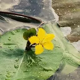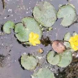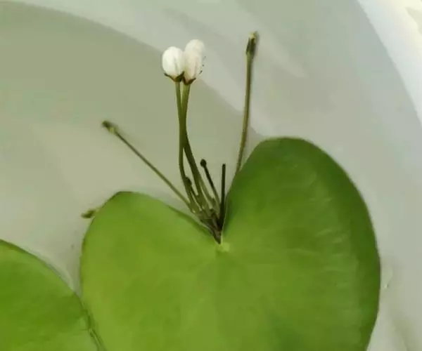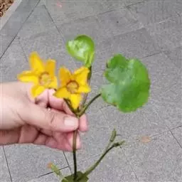 金银莲花是多年生水生草本。茎圆柱形,不分枝,形似叶柄,顶生单叶。叶飘浮,近革质,宽卵圆形或近圆形,长3-18厘米,下面密生腺体,基部心形,全缘,具不甚明显的掌状叶脉,叶柄短,圆柱形,长1-2厘米。