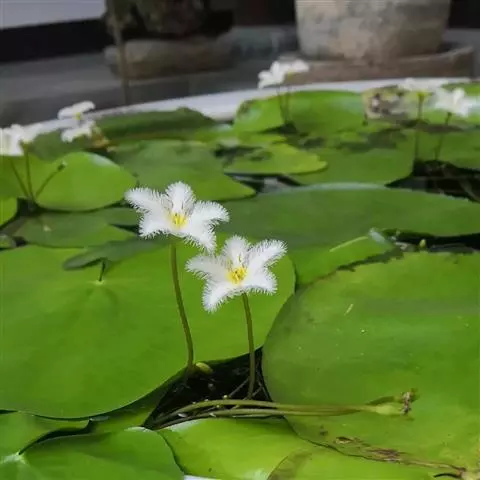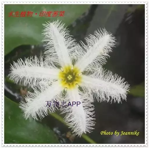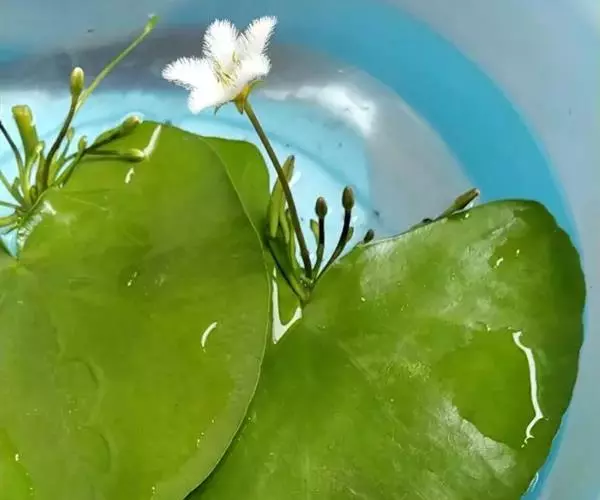 金银莲花又名印度莕菜,是公园常见的水生花卉,叶似睡莲,椭圆形至心形,革质光滑,青绿色,漂浮于水面;常在夏天开白色的小花,花齿绒毛状,幼小娇柔,开在碧波绿叶上,朵朵小花星星点点,能洒满整个水面,微风拂过,随风荡漾,摇曳生姿,带给人一种花欲静而风不止,景有尽而意无穷的美感。在风景区或公园湖面成片种植金银莲花,夏秋时节,那白色的小花,星罗棋布,银光闪闪,极目远眺,田园风光,秀色可餐。