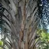 加那利海枣单干直立,自然高度可达18米,干径50-90厘米,幼时被以枯叶,老树则叶柄基部残存。具波状叶痕,羽状复叶,顶生丛出,向四方开张,形成大圆形树冠,长可达5-6米,略弯呈弧形;羽片数可达400个,绿色;小叶狭条形,长100厘米左右,宽2-3厘米,近基部小叶坚韧,变成针刺状。叶柄短,基部肥厚成为多数黄褐色叶鞘网包被树干。