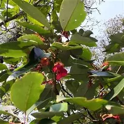 红花荷:金缕梅科红花荷属常绿乔木,高可达12米,嫩枝颇粗壮,叶厚革质,卵形,光滑无毛,有三出脉,叶…