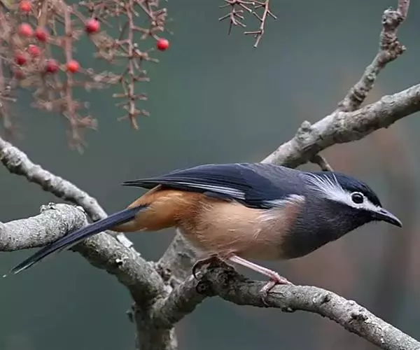 剑嘴鹛:中型鸟类,体长21-22厘米。嘴特别细长而向下弯曲,头顶和头侧烟灰色具长而窄的白色眉纹,…