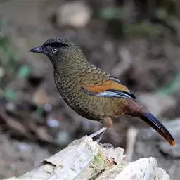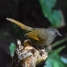 蓝翅噪鹛:噪鹛科、彩翼噪鹛属动物。中型鸟类,体长22-25厘米。上体棕橄榄褐色密被黑色鳞状斑,…