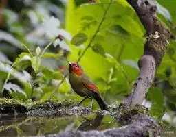 红头穗鹛是雀形目画眉科伪穗鹛属鸟类。成鸟额至头顶或至枕部为棕红色;额基和眼先淡灰黄色;眼圈隐隐泛黄白色;颊和耳羽灰黄色缀有橄榄褐色;其余上体连同翼和尾的表面为橄榄绿褐色;飞羽和尾羽暗褐色,外缘沾茶黄色;下体颏、喉和胸浅灰黄色,具细黑羽干纹;腹和尾下覆羽橄榄褐绿色;腋羽和翼下覆羽淡灰黄色;虹膜棕红色;上喙角褐色,下喙暗黄色;脚黄褐色。红头穗鹛分布于亚洲东南部地区;在中国分布于秦岭及以南的广大地区,包括长江流域、华南、华中和西南地区。栖息于山地森林中。常单独或成对活动,有时也结小群或与棕颈钩嘴鹛等其他鸟类混群,在林下灌丛间来回跳跃穿梭。主食鞘翅目、鳞翅目、直翅目、膜翅目、双翅目和半翅目等昆虫,偶食少量植物种实。繁殖期在4-7月,营巢于茂密灌草丛或竹丛中。窝卵数4-5枚,卵白色且具棕斑,雏鸟晚成;雌雄亲鸟轮流孵卵,共同育雏。红头穗鹛为食虫益鸟,被列入中国林业局2000年8月1日发布的《国家保护的