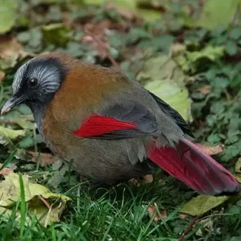 银耳相思鸟小型鸟类,体长14~18厘米。头顶黑色,耳羽银灰色,前额橙黄色;外侧飞羽橙黄色,基部朱红色,…