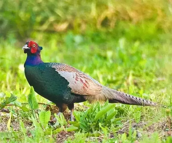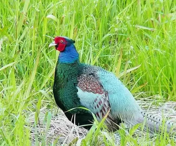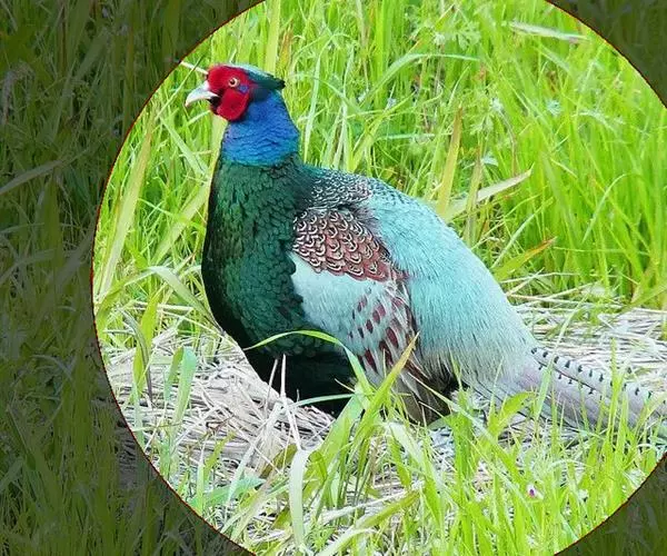 绿雉(学名:Phasianus versicolor):属于大型鸡类。全长约80厘米。雌雄差异很大,雄性具有大的肉冠和极华丽的羽毛。上体羽多呈紫铜、蓝绿等色,具金属光泽;下背及腰部羽白色。飞羽黑褐具绿缘,尾羽蓝绿色。是一种栖息在低地的鸟类,走禽。体结实,喙短,呈圆锥形,适于啄食植物种子;翼短圆,不善飞;脚强健,具锐爪,善于行走和掘地寻食。
