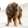 藏獒产于中国青藏高原3000—5000公尺的高寒地带,被看作西藏人的护卫犬和保护神,在西藏被喻为“天狗”。恶劣气候条件和艰苦的生活环境,造就了藏獒彪悍的体貌特征、威震群兽的勇猛和忠诚不二的品格。其特征是“体大如驴,奔驰如虎,吼声如狮,仪表堂堂”。