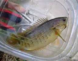 七星鳢,俗名: 鮕鮘、月鳢。英文: Small snakehead。体直长而呈棒棍状,尾部侧扁。头部宽扁,头顶平,似蛇头。口大,端位,下颌稍突出,口斜裂至眼睛后缘直下方;上下颌均具锐利牙齿。无须。前鼻孔成管状,向前伸达上唇。上鳃腔宽大,具上鳃器辅助呼吸。全身均被圆鳞,头顶的鳞片较大。侧线完全,侧线鳞54-57。背鳍和臀鳍发达;背鳍软条数为 43-45;臀鳍软条数为27-30;缺腹鳍;尾鳍后缘圆形。身体呈绿褐色或暗黑色,腹部灰白;眼后方有二条黑色纵带,一直延伸至鳃盖后缘;体侧有8-9 条<形黑色横带,尖端向前。尾鳍基部有一近圆形黑色眼斑。一般全长为9-15公分,最大可达25公分,分布台湾、闽西南。