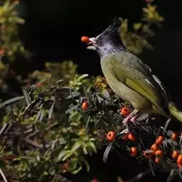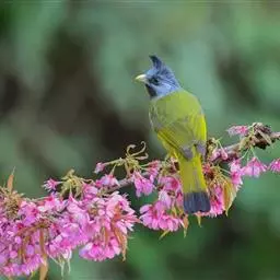 凤头雀嘴鹎:属小型鸟类,体长18-22厘米。嘴粗短、呈象牙色或乳黄色,前额和脸灰色,头顶黑色,…