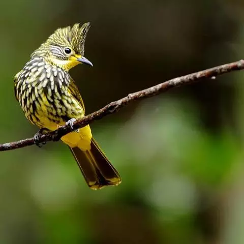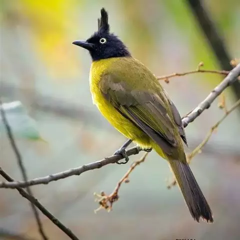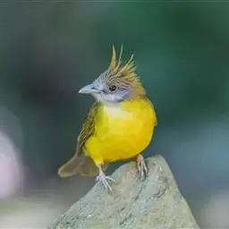 黑冠黄鹎:体长18-21厘米,是一种中等体型偏黄色鹎。整个头、颈、颏、喉黑色,头顶有显著直立的羽冠,…