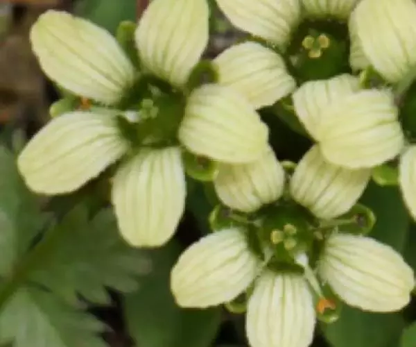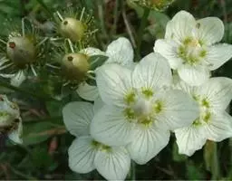 突隔梅花草 多年生草本,高12-35厘米。根状茎形状多样,其上部有褐色鳞片,下部有不甚发达纤维状根。基生叶3-4 (-7),具长柄;叶片肾形或近圆形,长2-4厘米,宽2.5-4.5厘米,先端圆,带突起圆头或急尖头,基部弯缺甚深呈深心形,全缘,上面褐绿色,下面灰绿色,有突起5-7 (-9) 条脉;叶柄长 (3-) 5-16厘米,扁平,两侧有窄膜;托叶膜质,灰白色,边有褐色流苏状毛。茎1,中部以下或近中部具1茎生叶,与基生叶同形,有时较小,有时近等大,偶有比基生叶大者,常在其基部有2-3条铁锈色附属物,无柄半抱茎;花单生于茎顶,直径3-3.5厘米;萼筒倒圆锥形;萼片长圆形、卵形或倒卵形,长6-8毫米,宽4-6毫米,先端圆钝,全缘,通常3-5 (-7) 条脉,有明显密集褐色小点;花瓣白色,长圆倒卵形或匙状倒卵形,长 (1-) 1.2-2.5厘米,宽6-9毫米,先端圆或急尖,基部渐窄成长约5毫米之爪,上半部1/3有短而疏流苏状毛,通常有5条紫褐色脉,并密被紫褐色小点;雄蕊5,花丝长短不等,长者可达5.5毫米,短的长仅1毫米,向基部逐渐加宽,花药椭圆形,顶生,侧裂,药隔连合伸长,呈匕首状,长可达5毫米;退化雄蕊5,长3.5-4毫米,先端3裂,裂片长1.5-1.8毫米,偶达中裂,两侧裂先端微向内弯,通常伸出退化雄蕊之外,偶有不伸出者,柱头3裂,裂片倒卵形,花后反折。蒴果3裂;种子多数,褐色,有光泽。花期7-8月,果期9月开始。
