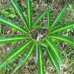 多年生草本。株高30厘米-40厘米,无茎或茎短小,具块茎或伸长的根茎,有时茎变厚而木质。叶基生,叶长椭圆状披针形,两端渐尖,叶脉明显,叶柄长,深绿色,基部呈鞘状,叶全缘或有分裂。