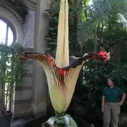 春夏开花,花葶直立,高出叶丛,佛焰苞直立向上,大而显着,稍卷,白色或微绿色,肉穗花序圆柱状,乳黄色。大型种,叶深色,花小、白色,生长慢。花期5-8月。