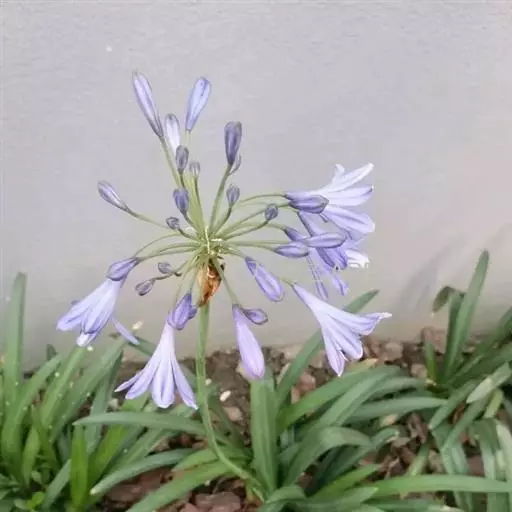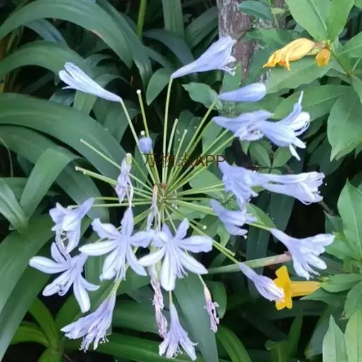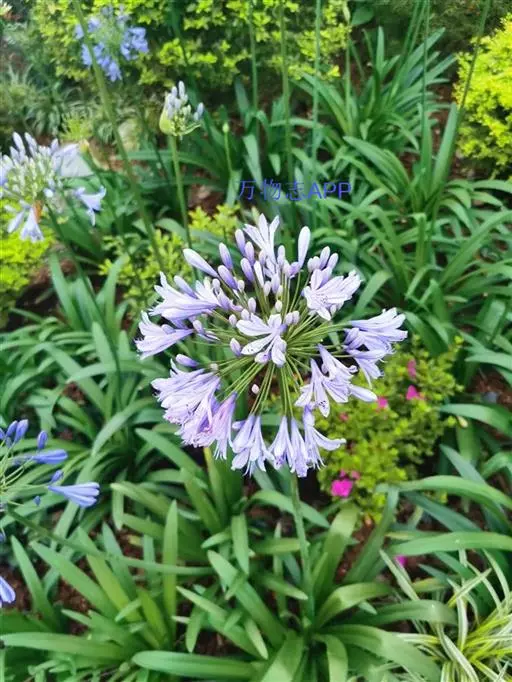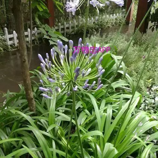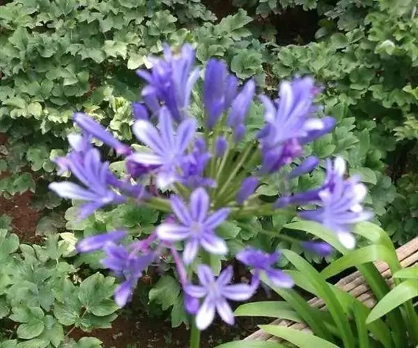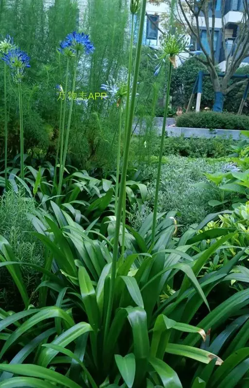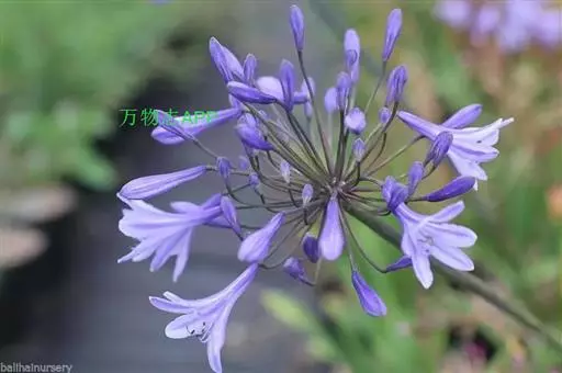 百子莲属多年生宿根草本。线状披针形,花茎直立,高可达60厘米;伞形花序,有花10朵~50朵,花漏斗状,深蓝色或白色,花药最初为黄色,后变成黑色;花期7月~8月。