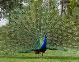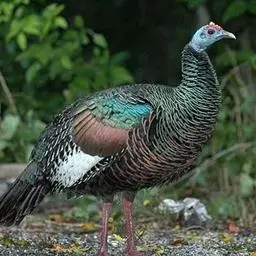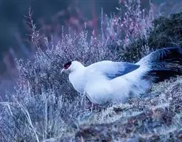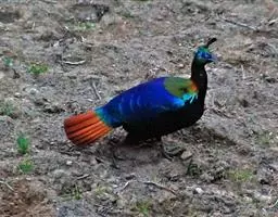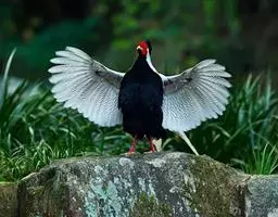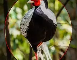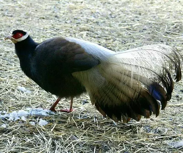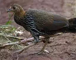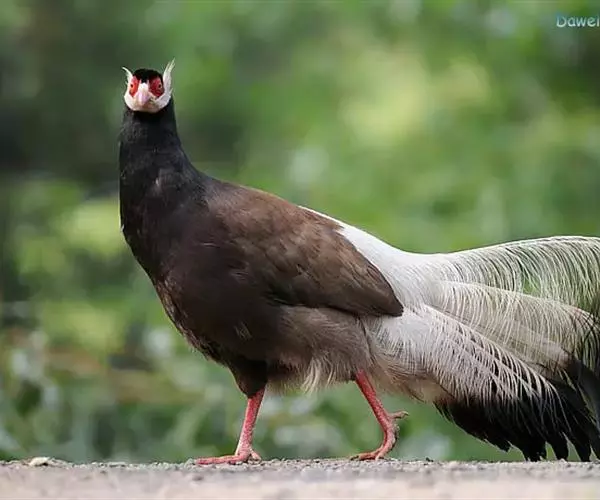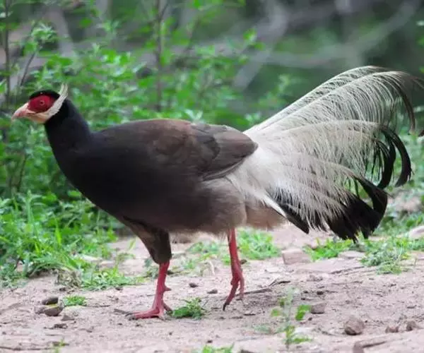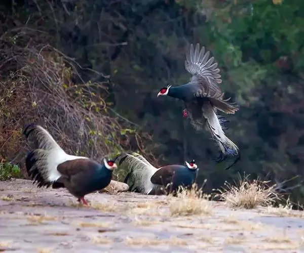 褐马鸡(学名:Crossoptilon mantchuricum)是中国特产珍稀鸟类,体高约60厘米,体长1-1.2米,体重5千克,全身呈浓褐色,头和颈为灰黑色,头顶有似冠状的绒黑短羽,脸和两颊裸露无羽,呈艳红色,尾巴高高竖起。翅短,不善飞行,两腿粗壮,善于奔跑。