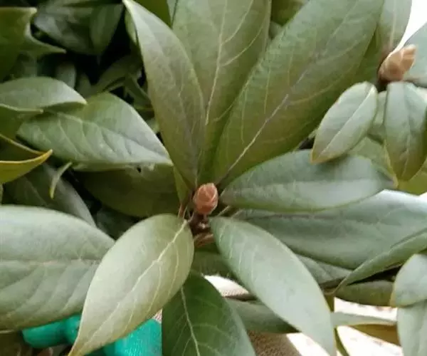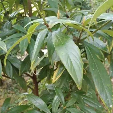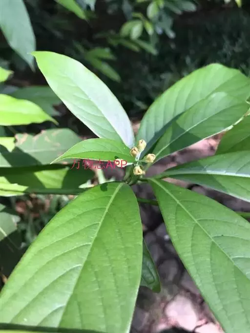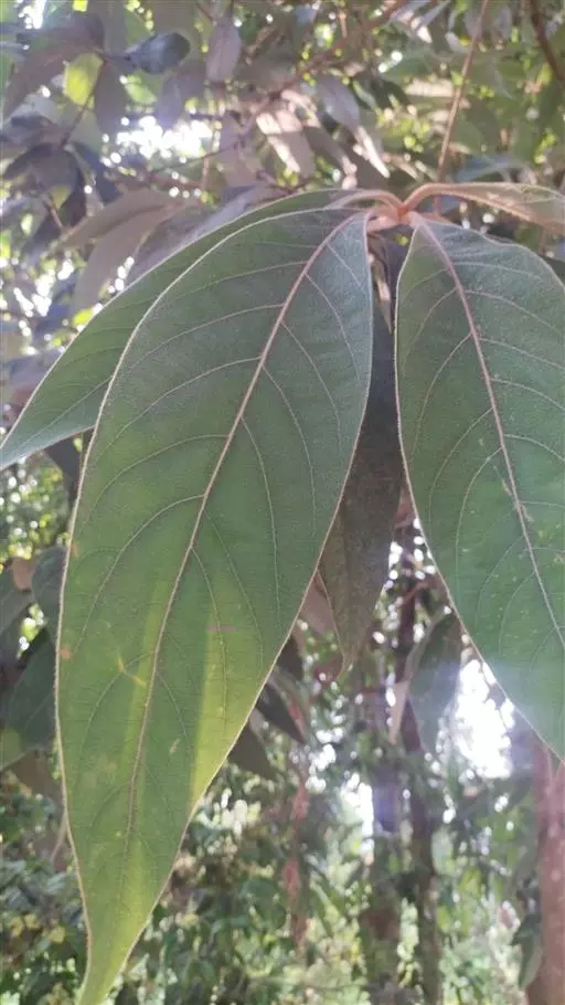 常绿大乔木,高达30余米,胸径1米;幼枝有棱,被黄褐色或灰褐色柔毛,2年生枝黑褐色,无毛。叶长圆形,长圆状倒披针形或窄椭圆形,长5一11厘米,宽1.5一4厘米,先端渐尖,基部楔形,上面有光泽,中脉上被柔毛,下面被短柔毛,侧脉约14对;叶柄纤细,初被黄褐色柔毛。圆锥花序腋生,被短柔毛,长4-9厘米;花被裂片6,椭圆形,近等大,两面被柔毛;发育雄蕊9枚,被柔毛,花药4室,第3轮的花丝基部各具1对无柄腺体,退化雄蕊长约1毫米,被柔毛,三角形;雌蕊无毛,长2毫米,子房近球形,花柱约与子房等长,柱头膨大。果序被毛;核果椭圆形或椭圆状卵圆形,成熟时黑色,长约13厘米,花被裂片宿存,紧贴果实基部。
