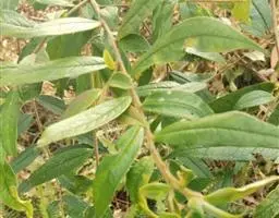 叶条状披针形,长5-10厘米,宽1-2厘米,顶端渐尖,基部阔三角形、圆形或截形,边缘有钝锯齿;叶柄长1-2.5厘米。