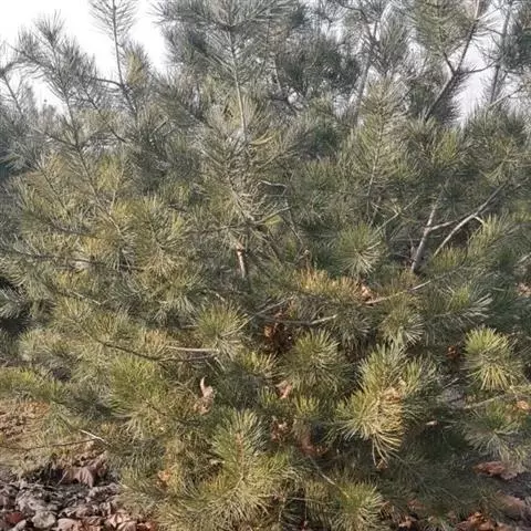 乔木,在原产地高达30米,胸径90厘米;树皮灰褐色或暗红褐色,纵裂成鳞状块片剥落;枝条每年生长3-4轮,春季生长的节间较长,夏秋生长的节间较短,小枝粗壮,橙褐色,后变为褐色至灰褐色,鳞叶上部披针形,淡褐色,边缘有睫毛,干枯后宿存数年不落,故小枝粗糙;冬芽圆柱形,上部渐窄,无树脂,芽鳞淡灰色。针叶2-3针一束并存,长18-25厘米,稀达30厘米,径约2毫米,刚硬,深绿色,有气孔线,边缘有锯齿;树脂道2-9(11)个,多内生;叶鞘长约1.2厘米。球果圆锥形或窄卵圆形,长6.5-13厘米,径3-5厘米,有梗,种鳞张开后径5-7厘米,成熟后至第二年夏季脱落;种鳞的鳞盾近斜方形,肥厚,有锐横脊,鳞脐瘤状,宽5-6毫米,先端急尖,长不及1毫米,直伸或微向上弯;种子卵圆形,微具3棱,长6毫米,黑色,有灰色斑点,种翅长0.8-3.3厘米,易脱落。