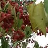 蒴果三角卵圆状,4裂较浅成圆阔4棱,长8-14毫米,直径8-17毫米;果序梗长1-3厘米;小果梗长约1厘米;种子阔椭圆状,长6-8毫米,棕红色,假种皮橙黄色,全包种子,上部两侧开裂。花期3-5月,果期6-10月。