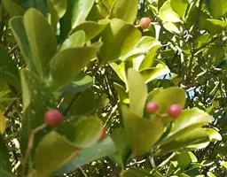 常绿灌木或小乔木,高达8米。 叶光亮革质,倒卵形或窄长椭圆形,长3-6厘米,宽2-3厘米。 聚伞花…
