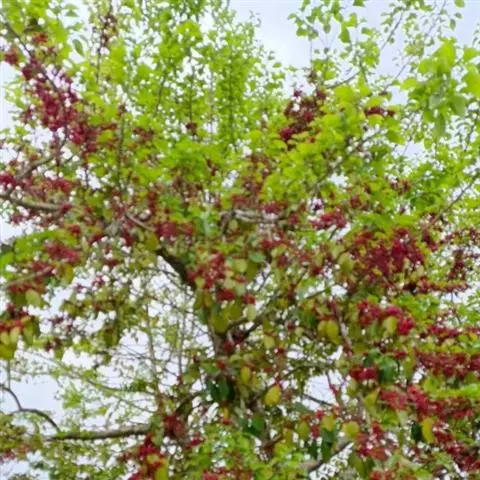 多年生灌木,秋冬落叶,树高2-3米,属浅根性树种,主根不明显,须根发达;单叶互生,长卵型或卵状椭圆形,具硬齿状边缘,叶片表面无毛,绿色,嫩叶古铜色,叶背面多毛,略白;为雌雄异株植物,花乳白色,复聚散花序,着生于叶腋处,雌花3-6朵,3朵居多,雄花几十朵聚生叶腋;核果浆果状,红色,2-3果丛生,单果种子数为4-6粒。 轮生冬青