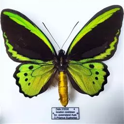 亚历山大女皇鸟翼凤蝶,又称大鸟翼蝶,是鳞翅目凤蝶科鸟翼蝶属蝴蝶;翅膀圆阔、褐色,…