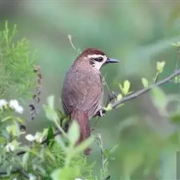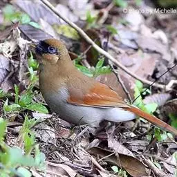 红翅薮鹛是噪眉科、薮鹛属中型鸟类,体长21-24厘米。头顶灰褐色,头侧和颈侧赤红色,上体橄榄褐色,…