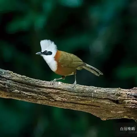 褐头凤鹛小型鸟类,体长12~13厘米。头顶有可竖立的红褐色羽冠,头侧、枕、颊、喉和下体白色,…