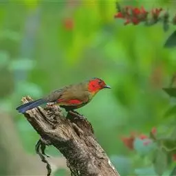 红头穗鹛是雀形目画眉科伪穗鹛属鸟类。成鸟额至头顶或至枕部为棕红色;额基和眼先淡灰黄色;眼圈隐隐泛黄白色;颊和耳羽灰黄色缀有橄榄褐色;其余上体连同翼和尾的表面为橄榄绿褐色;飞羽和尾羽暗褐色,外缘沾茶黄色;下体颏、喉和胸浅灰黄色,具细黑羽干纹;腹和尾下覆羽橄榄褐绿色;腋羽和翼下覆羽淡灰黄色;虹膜棕红色;上喙角褐色,下喙暗黄色;脚黄褐色。红头穗鹛分布于亚洲东南部地区;在中国分布于秦岭及以南的广大地区,包括长江流域、华南、华中和西南地区。栖息于山地森林中。常单独或成对活动,有时也结小群或与棕颈钩嘴鹛等其他鸟类混群,在林下灌丛间来回跳跃穿梭。主食鞘翅目、鳞翅目、直翅目、膜翅目、双翅目和半翅目等昆虫,偶食少量植物种实。繁殖期在4-7月,营巢于茂密灌草丛或竹丛中。窝卵数4-5枚,卵白色且具棕斑,雏鸟晚成;雌雄亲鸟轮流孵卵,共同育雏。红头穗鹛为食虫益鸟,被列入中国林业局2000年8月1日发布的《国家保护的