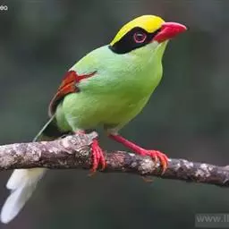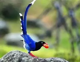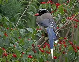 蓝绿鹊:中型鸟类,共有5个亚种。体长36-38厘米。尾长,嘴、脚红色。通体羽色主要为草绿色,…