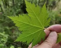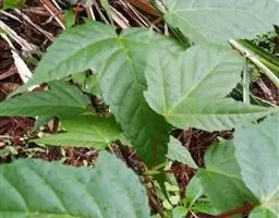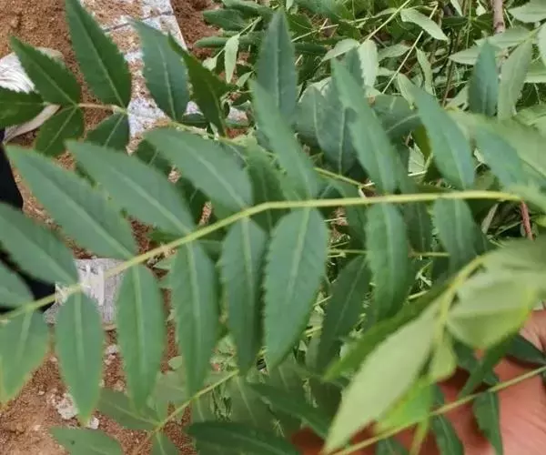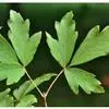 叶连柄长15-30厘米;小叶4-8对,膜质或纸质,披针形或近卵形,两侧稍不对称,长2.5-6厘米,宽1.2-2厘米,顶端渐尖,基部楔形,边缘有锐利锯齿,顶生小叶通常3深裂,腹面深绿色,无毛或中脉上有疏毛,背面鲜绿色,嫩时被绒毛和成束的星状毛;侧脉纤细,两面略凸起。