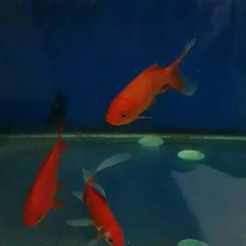 ②绿水饲养。每当鹤顶红、鹅头红的鱼卵孵出后,10~15天第一次换水(脱水)时,可适当用一点鱼苗缸中的老水,不要全部用新水。这以后,饲养幼鱼的水不要用白水,一定要养在嫩绿水或绿色水中。即使幼鱼长到2厘米左右(特别是在将要变色前后阶段70~81天时),也不要经常把它们放在无色的白水中饲养。这样也许在某种程度上可促使幼鱼头顶红色肉瘤中黄色素细胞的分裂和发育生长。