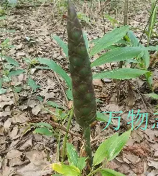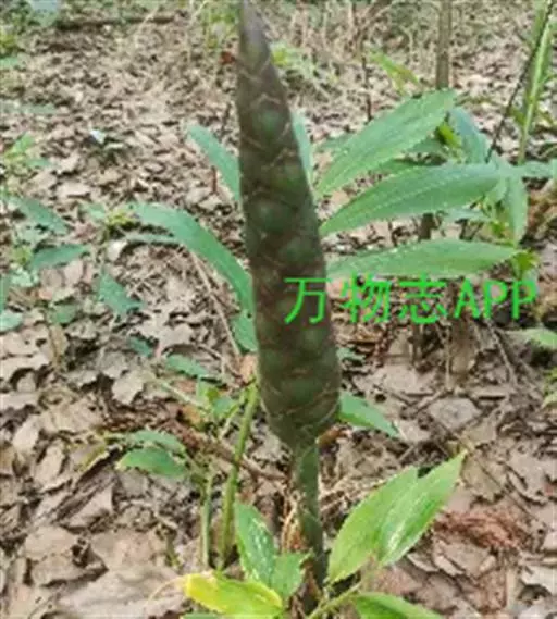 总花梗长15-20厘米,被紧接的、长4-5厘米的鳞片状鞘;穗状花序长圆形,长15-30厘米;苞片卵形,长3-4厘米,顶端急尖,红色;花萼长1.5-1.8厘米,沿一侧开裂几达中部;花冠管长2.5厘米,裂片具紫红色斑纹,长圆形,长1.5厘米,顶端渐尖,后方的一枚较宽;唇瓣中央裂片倒卵形,长1.5厘米,侧裂片长8毫米,顶端尖;花丝缺,花药长1厘米,药隔附属体喙状,长约5毫米,弯曲;子房被绢毛,长2-2.5毫米。种子黑色,光亮,假种皮白色,撕裂状。花期5-8月;果期8-10月。