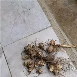 珊瑚姜一年四季均可采收,但七月份至十月份正值生长高峰区,生长量大,含水多,在十一月份至十二月份倒苗后采收为宜。采后除去泥土,将老、嫩姜分开,嫩姜保藏作种,老姜可供药用,烘干即可,也可切成2厘米厚的姜块晒干,阴雨天不可切晒,以免干燥不及而发生腐烂。