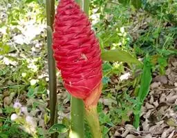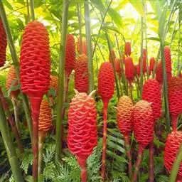 珊瑚姜是姜科、姜属植物。株高近1米。叶片长圆状披针形或披针形,长20-30厘米,宽4-6厘米,…