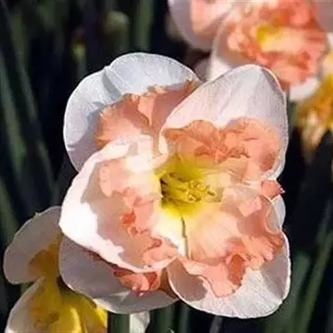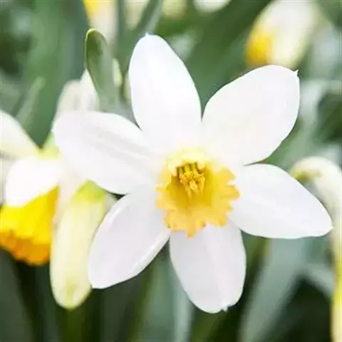 水仙花瓣多为6片,也有8片的,酷似椭圆形,花瓣末处呈鹅黄色。花蕊外面有一个如碗一般的保护罩。花葶自叶丛中抽出,高于叶面;一般开花的多为4-5片叶的叶丛,每球抽花1-7支,多者可达10支以上;伞房花序(伞形花序)着花4-6朵,多者达10余朵;花白色,芳香;花期1-2月。
