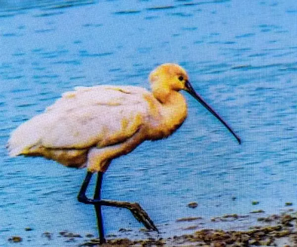 别名篦鹭、琵琶嘴鹭,属于鹮科,学名为Platalea leucorodia。 大型涉禽。全长85厘米左右。全身羽毛白色。眼先、眼周、颏、上喉裸皮黄色。嘴长直、扁阔似琵琶,故而得名。胸及头部冠羽黄色(冬羽纯白)。颈、腿均长,腿下部裸露呈黑色。栖息于沼泽地、河滩、苇塘等处。涉水啄食小型动物,有时也食水生植物。筑巢于近水高树上或芦苇丛中,每窝产卵3~4枚,白色无斑或钝端有稀疏斑点。雌雄轮流孵卵约25天,雏鸟留巢期约40天。在东北、华北、西北一带繁殖;长江下游和华南一带越冬。属于国家二级保护动物。