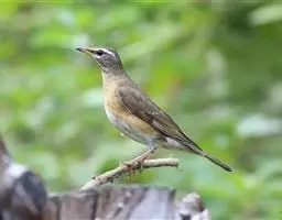 白眉歌鸫,是雀形目鸫科鸫属鸟类。体型略小并具有褐色斑点的歌鸫,上体橄榄褐色,眉纹白色,脸部斑驳,…