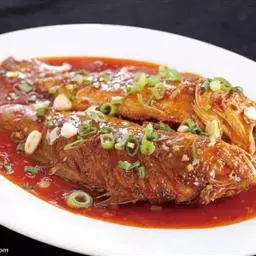 干烧小黄鱼 是由黄鱼等制作的食物,配料是葱、姜、蒜。