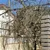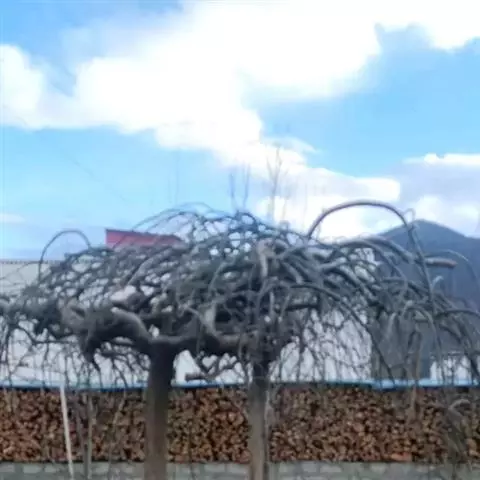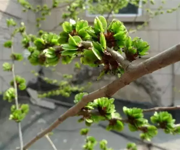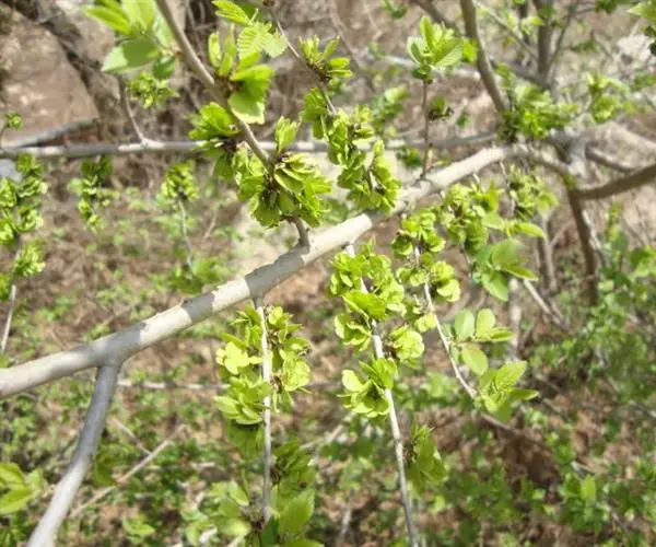 树皮暗灰色,粗糙,不规则纵裂。幼树枝条直立,且被白色毛;老树枝条先端下垂,有时木栓质发达成为瘤状。…