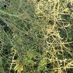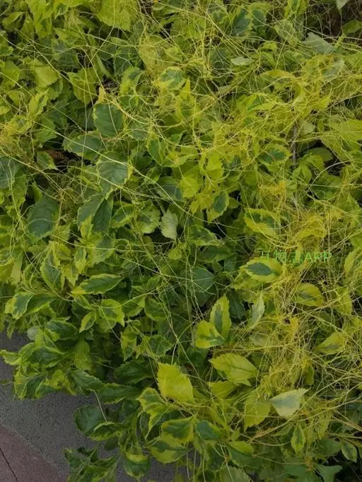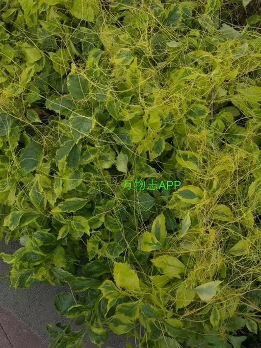 症状特点:苗木和花卉均可受菟丝子寄生危害。花卉苗木受害时,枝条被寄生物缠绕而生缢痕,生育不良,树势衰落,观赏效果受影响,严重时嫩稍和全株枯死。成株受害,由于菟丝子生长迅速而繁茂,极易把整个树冠覆盖,不仅影响花卉苗木叶片的光合作用,而且营养物质被菟丝子所夺取,致使叶片黄化易落,枝稍干枯,长势衰落,轻则影响植株生长和观赏效果,重则致全株死亡。