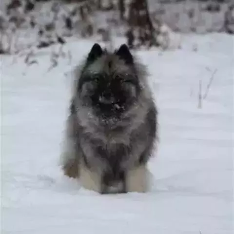 荷兰毛狮犬耳朵小,呈三角形,在头部较高的位置,且竖立;口吻中等长度,既不粗糙也不尖细,…