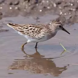 斑胸滨鹬小中型涉禽;体长23厘米,翼展37-45厘米,体重126克。嘴形直,…