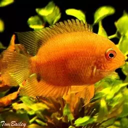 对水质的要求并不高,比较合适中性的水质,弱酸性和弱碱性 红宝石鱼 水质并不太合适。繁殖这种鱼并不很困难。这种鱼不同于其他非洲慈鲷,它们不是采用口孵方式而是采用开放方式进行繁殖。繁殖的时候雄鱼会在平滑的石头上打扫出一块产床,并引导雌鱼在其中产卵。卵呈环形布置,数量约为250-300枚。亲鱼会照顾鱼卵大约3天后就可以孵出小鱼,再经过5-6天仔鱼就会自由游动。亲鱼会一直照顾它们直到幼鱼可以自由的捕食。