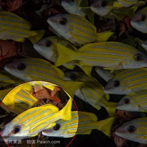 十挑尾鳍下半部及臀鳍、胸鳍较红之幼鱼。