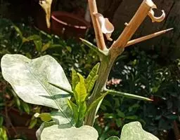 香橼为小乔木或灌木状;株高达5米;幼枝、芽及花蕾均暗紫红色;茎枝多刺,长达4厘米;单叶,…