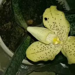 紫花苞舌兰:植株高达1米。假鳞茎卵状圆锥形,具3-5枚叶。叶质地薄,淡绿色,狭长,具折扇状的脉。…