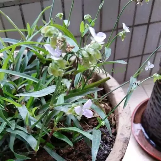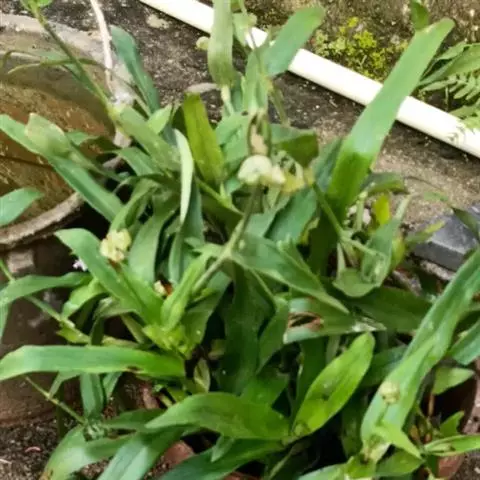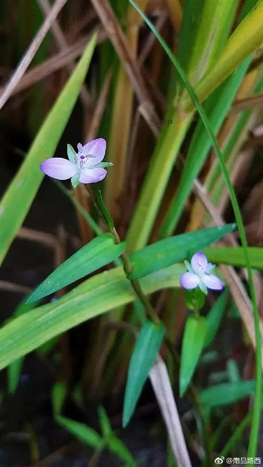 水竹叶又名:竹叶党。多年生草本,具长而横走根状茎。根状茎具叶鞘,节间长约6厘米,节上具细长须状根。茎肉质,下部匍匐,节上生根,上部上升,通常多分枝,长达40厘米,节间长8厘米,密生一列白色硬毛,这一列毛与下一个叶鞘的一列毛相连续。叶无柄,仅叶片下部有睫毛和叶鞘合缝处有一列毛,这一列毛与上一个节上的衔接而成一个系列,叶的他处无毛;叶片竹叶形,平展或稍折叠,长2-6厘米,宽5-8毫米,顶端渐尖而头钝。花序通常仅有单朵花,顶生并兼腋生,花序梗长1-4厘米,顶生者梗长,腋生者短,花序梗中部有一个条状的苞片,有时苞片腋中生一朵花;萼片绿色,狭长圆形,浅舟状,长4-6毫米,无毛,果期宿存;花瓣粉红色,紫红色或蓝紫色,倒卵圆形,稍长于萼片;花丝密生长须毛。蒴果卵圆状三棱形,长5-7毫米,直径3-4毫米,两端钝或短急尖,每室有种子3颗,有时仅1-2颗。种子短柱状,不扁,红灰色。花期9-10月(但在云南也有5月开花的),果期10-11月。