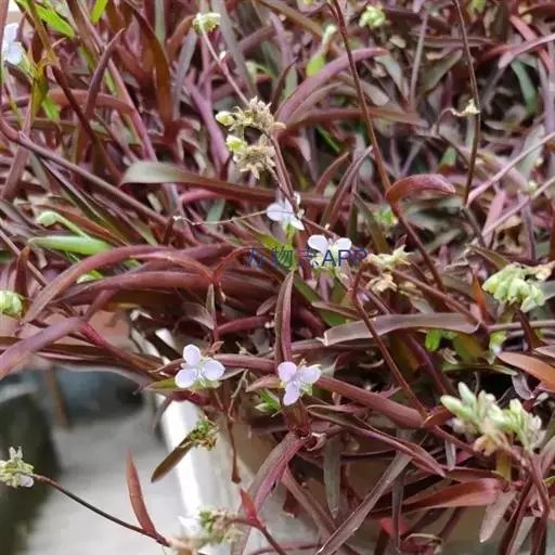干燥全草呈团块状,灰绿色。茎圆柱形,多分枝,下部节上生褐色须根。叶褶皱,平展者呈线状披针形,长1.5-3.5cm,宽4-6mm,先端渐尖,基部鞘状抱茎,全缘,绿色带紫色条纹。枝上部叶腋内有簇生花1-5朵,花萼绿色,3枚;花瓣蓝紫色;能育雄蕊3,不育雄蕊3枚;子房长圆形无柄。蒴果两端钝,长5-7mm。气微,味甘。以干燥,枝、叶多,色绿者为佳。