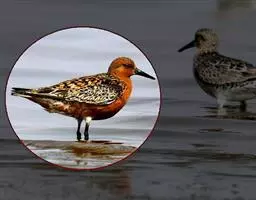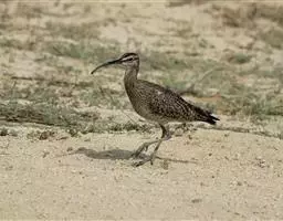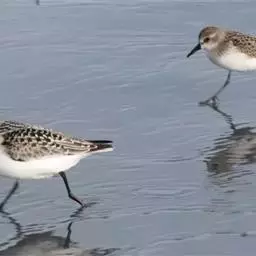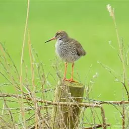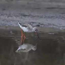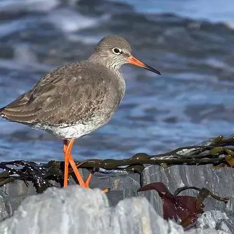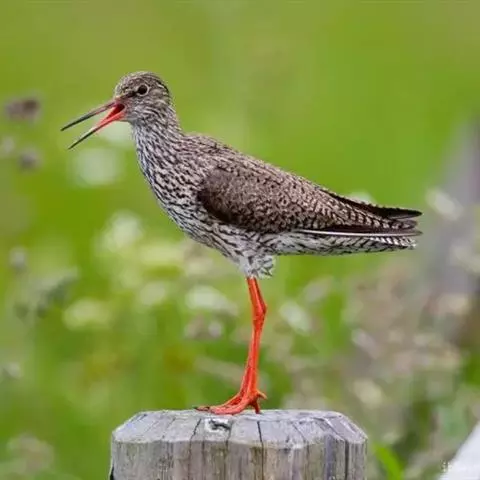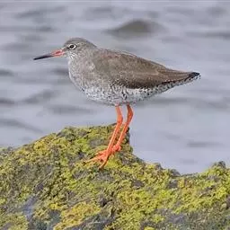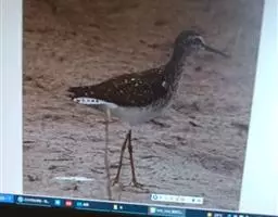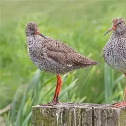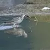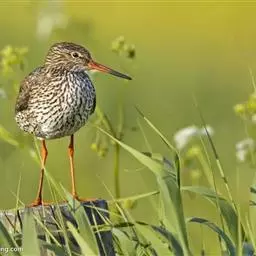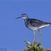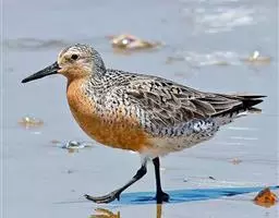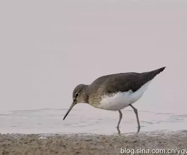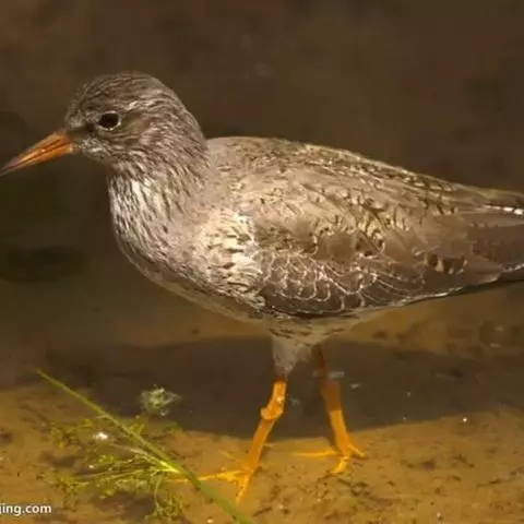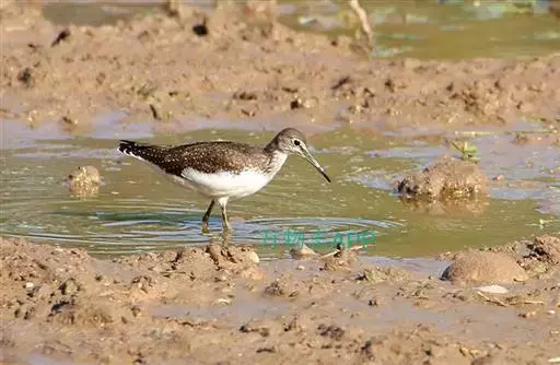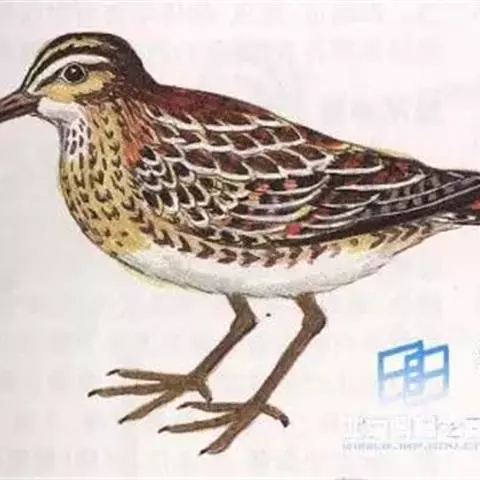 红脚鹬:体长28厘米,上体褐灰,下体白色,胸具褐色纵纹。飞行时腰部白色明显,次级飞羽具明显白色外缘。…