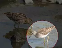 林鹬体长约20厘米,体型略小,纤细,褐灰色,腹部及臀偏白,腰白。上体灰褐色而极具斑点;眉纹长,…